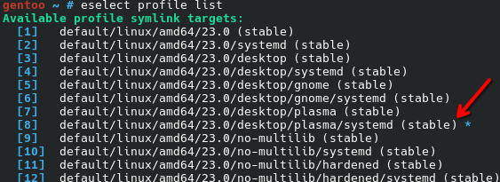 eselect profile set default/linux/amd64/23.0/desktop/plasma/systemd