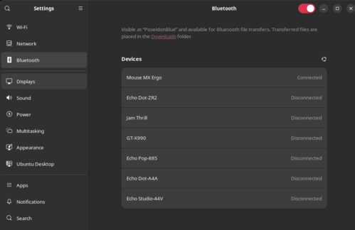 Attempting to connect to 44:3D:54:ED:A4:B1 [Mouse MX Ergo]# [CHG] Device 44:3D:54:ED:A4:B1 Connected: yes [Mouse MX Ergo]# [NEW] Endpoint /org/bluez/hci0/dev_44_3D_54_ED_A4_B1/sep1 [Mouse MX Ergo]# [NEW] Endpoint /org/bluez/hci0/dev_44_3D_54_ED_A4_B1/sep2 [Mouse MX Ergo]# [NEW] Transport /org/bluez/hci0/dev_44_3D_54_ED_A4_B1/sep2/fd5 [Mouse MX Ergo]# Connection successful [CHG] Transport /org/bluez/hci0/dev_44_3D_54_ED_A4_B1/sep2/fd5 State: active [Echo Dot-ZR2]# [NEW] Player /org/bluez/hci0/dev_44_3D_54_ED_A4_B1/player0 [default] [Echo Dot-ZR2]# [CHG] Device 44:3D:54:ED:A4:B1 ServicesResolved: yes