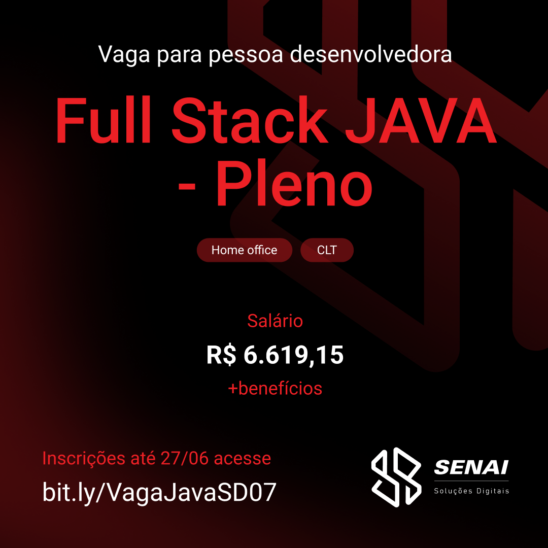 Vaga para desenvolvedor Java pleno para trabalhar com tecnologias web no SENAI de Santa Catarina.Bluefin - A nova geração de ambientes de trabalho Linux