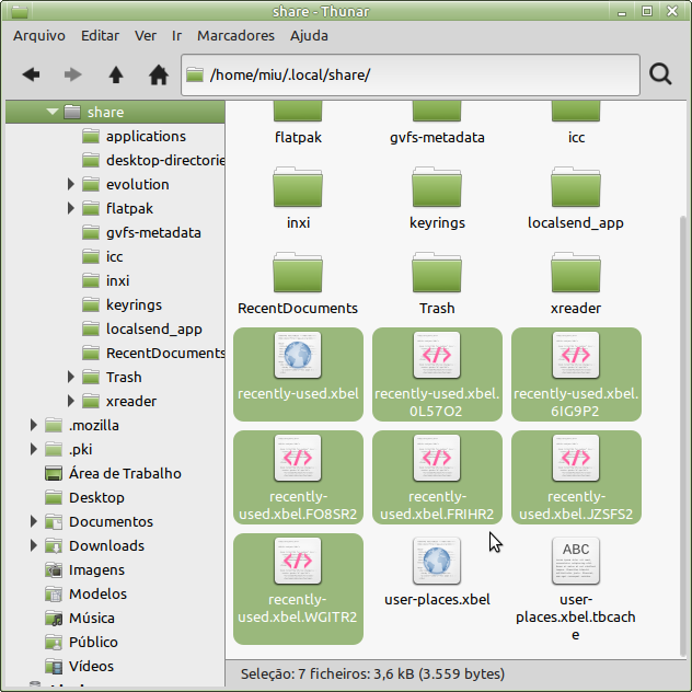 4) Quando deletei os arquivos de desktop citados no ítem 2 (pasta RecentDocuments), os arquivos "recently-used.xbel adicionais" desapareceram da pasta "~/.local/share/".