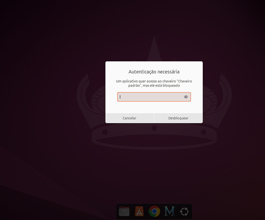 Ao iniciar a sessão, aparece uma janela dizendo: Autenticação necessária. um aplicativo quer acesso ao chaveiro "chaveiro padrão", mas ele está bloqueado.