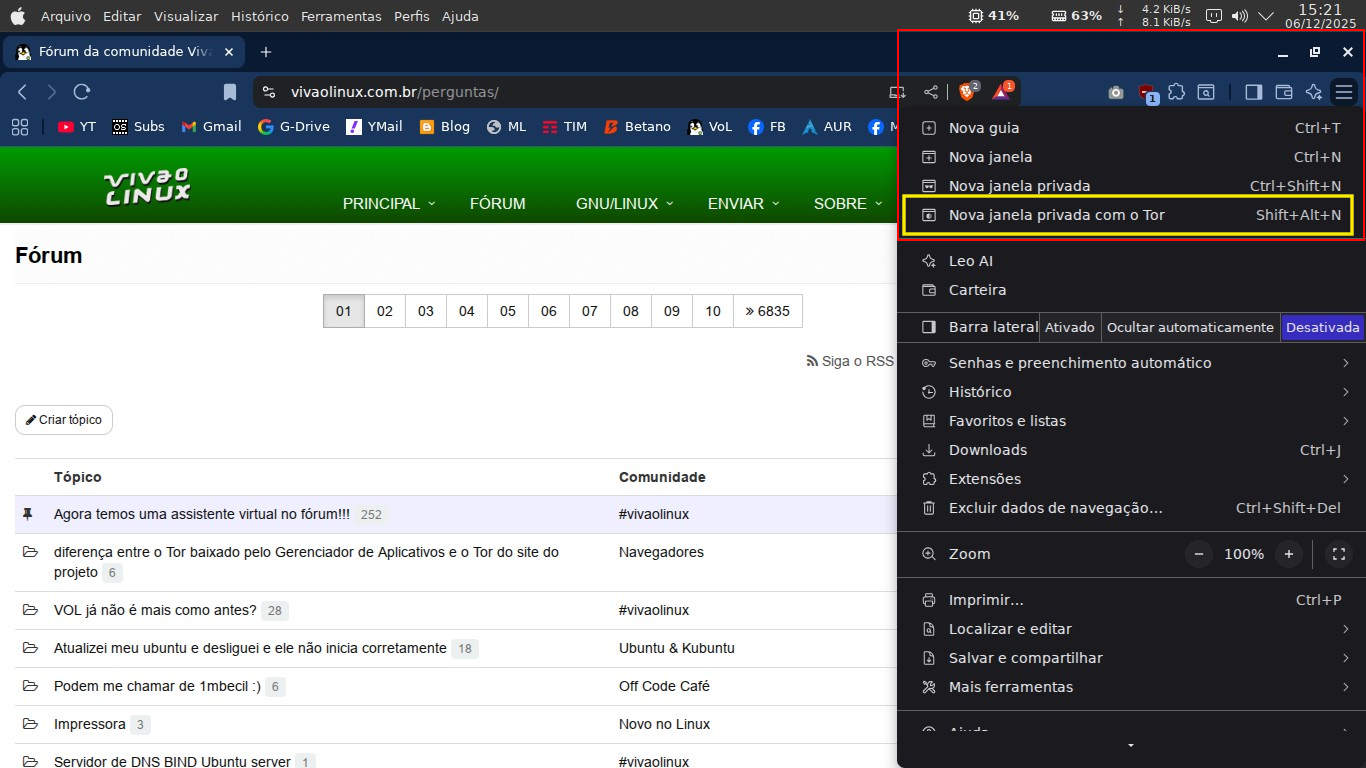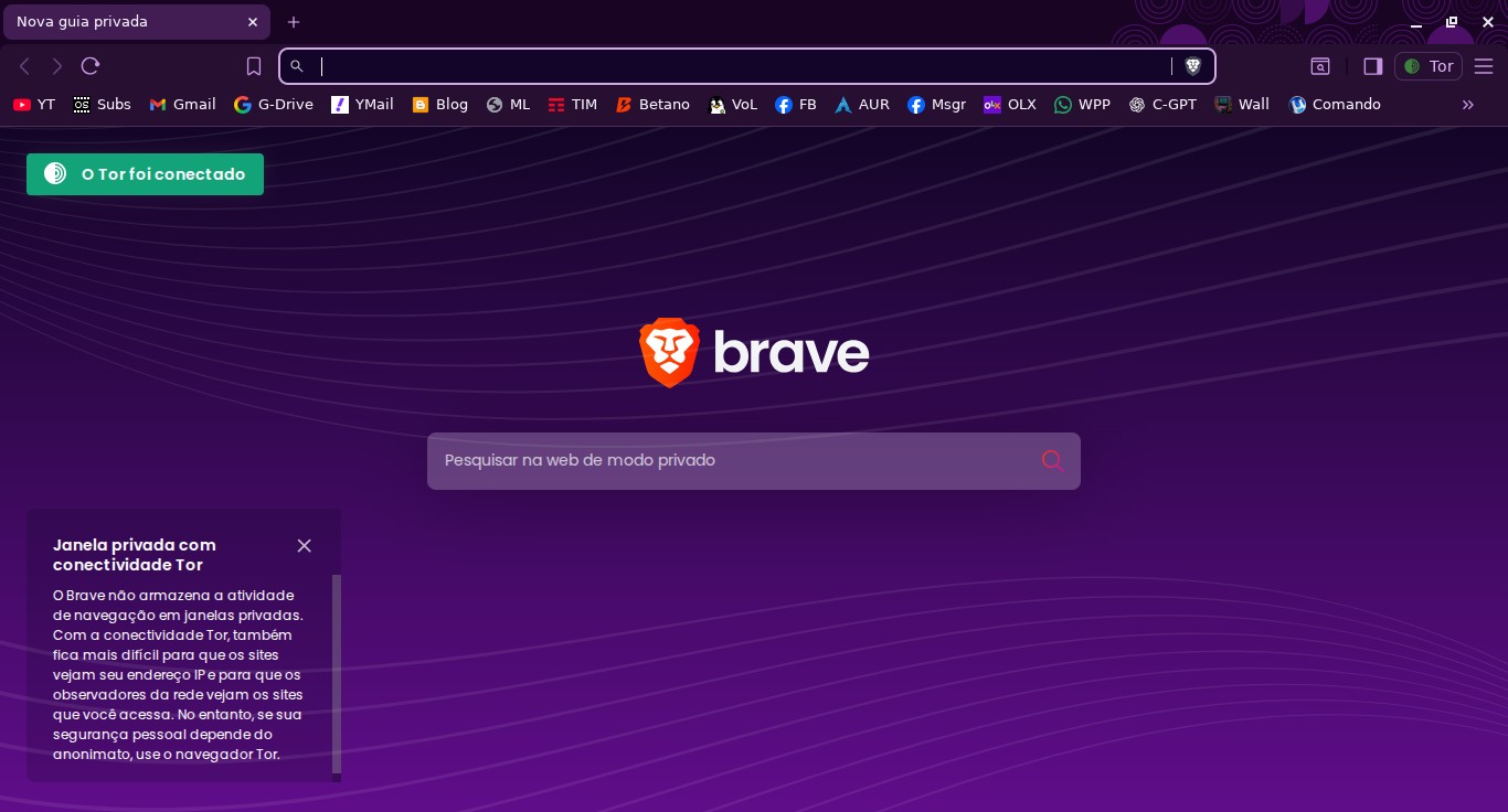 Pra quem não conhece a opção, o navegador Brave oferece a rede Tor como parte das janelas, onde existem as opções de janela normal, privada e com rede Tor, bem mais prático. É possível o acesso via "ícone dos 3 tracinhos" no lado superior direito do navegador e escolher a opção desejada.