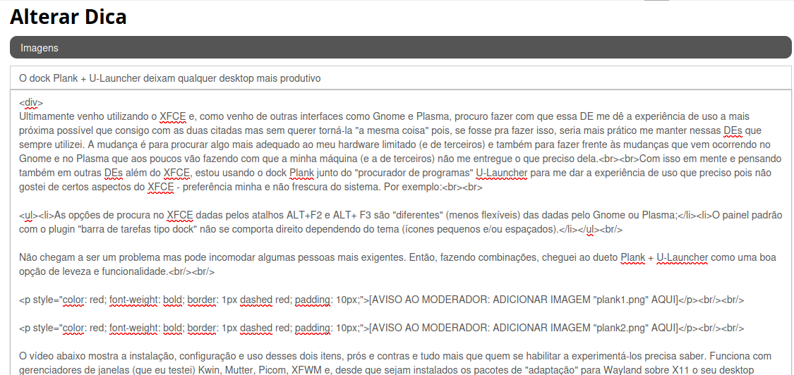 Só uma sugestão: poderia ter um botão para limpar tudo, por exemplo, eu fiz página a página e depois de se formatar uma página, antes de passar para outra tem de se fechar cada caixa de texto, de config, de comando, etc, individualmente.