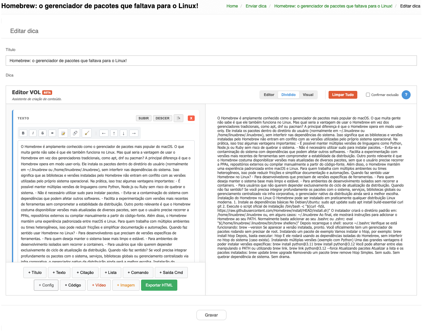 Seria bacana talvez adaptar para uma extensão de browser, para poder interagir diretamente com o formulário de criação de dicas, e inserir o conteúdo formatado.